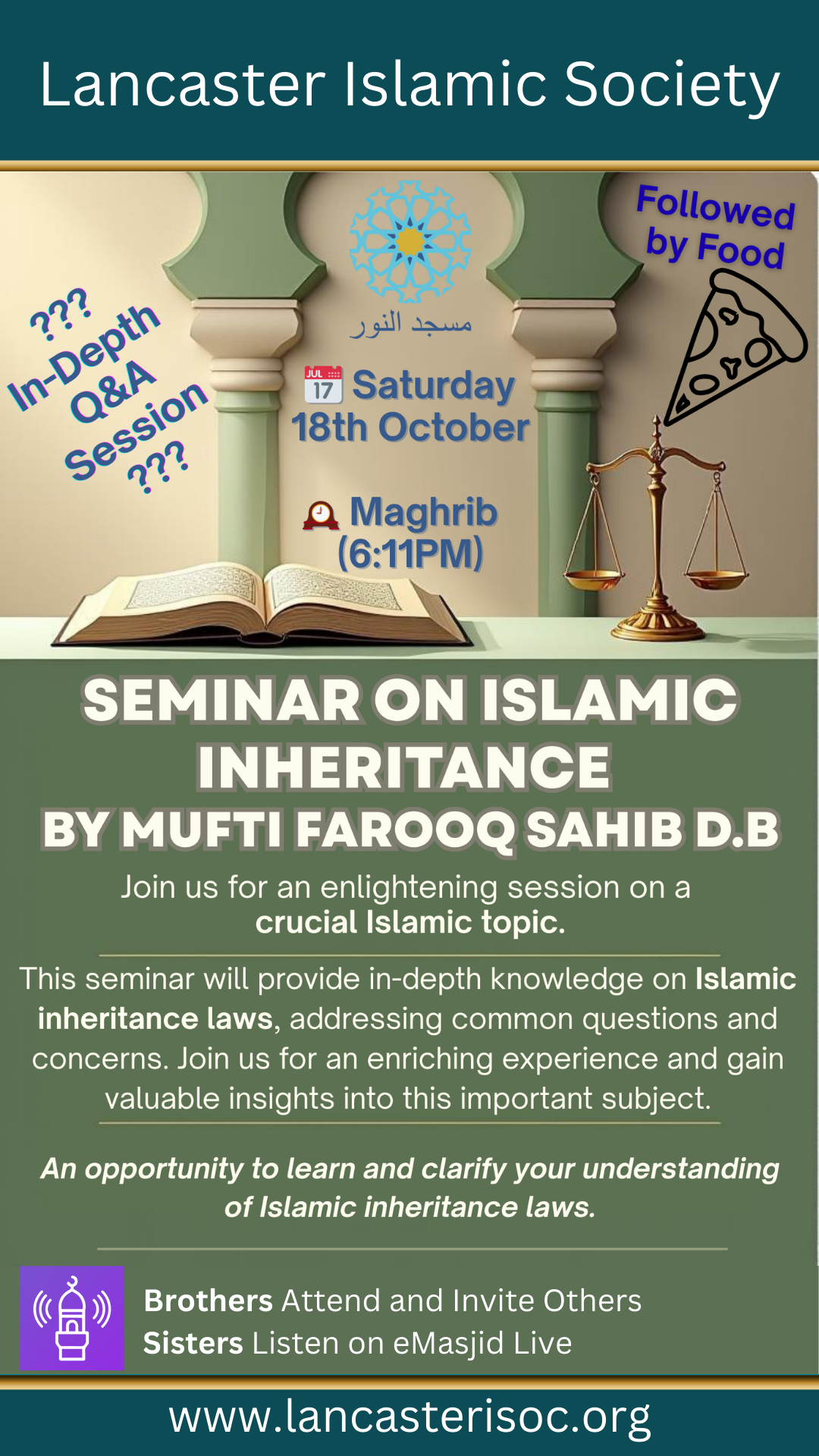 Masjid al Noor Lancaster. A Dars on Islamic Inheritance A beneficial dars by Mufti Farooq Sahib on the important topic of Islamic inheritance, offering guidance on the principles and rulings of mīrāth in Islam. A…