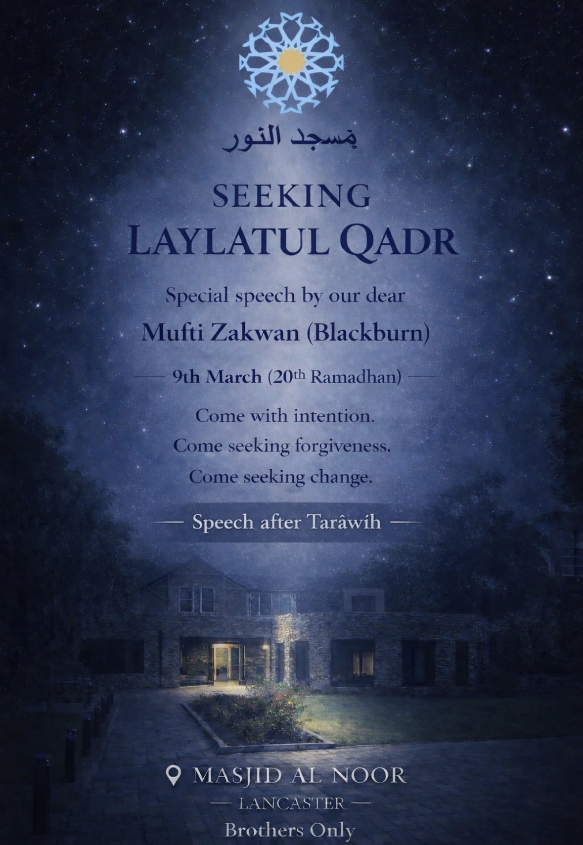 As we approached the last ten nights of Ramadhan — the most precious nights of the year — Masjid al Noor was blessed to host a special gathering of reminder and reflection. We were honoured to welcome Mufti Zakwan…
